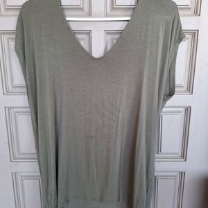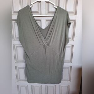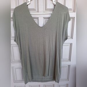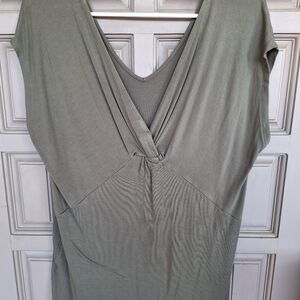Tahari T Deep V Neck SzL Sleeveless Knot Front Sage Green Front/Back Reversible