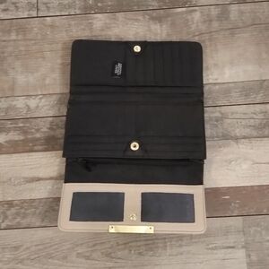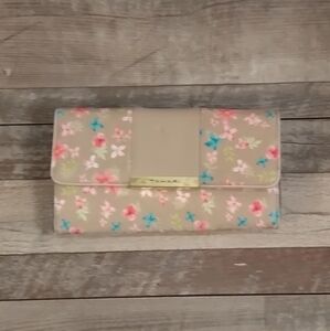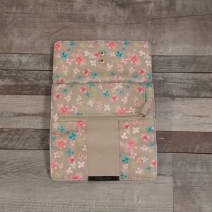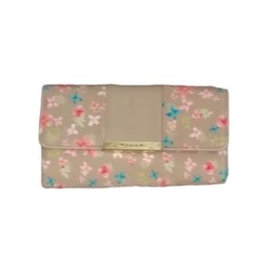 Tahari Tan Floral Foldable Button Snap Wallet.