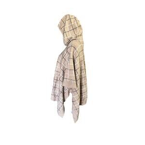 Tahari Tan Hooded Poncho – Black & White Plaid, Front Pockets – One Size