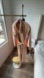 Chic Tahari trench coat in tan. Features a stylish tie belt.