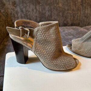 Tahari Taupe Grey Suede Slingback Mule Heels