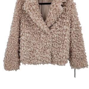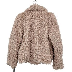 Tahari Teddy Coat M Pink Vegan Faux Fur Curly Textured Jacket Barbiecore Comfy