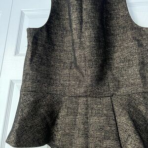 Elegant sleeveless blouse with a peplum hem. Textured black and gray fabric. Perfect for formal occasions. NOWT IN EXCELLENT CONDITION!