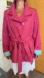 Tahari Think Pink/Turquoise Lined Nylon/Metallic Rain Jacket Trench Coat XL