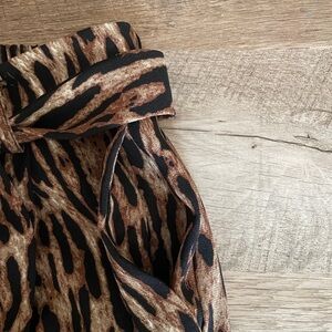 Tahari Tie Waist Wide Leg Crop Palazzo Leopard Print Pants Size XS NWT