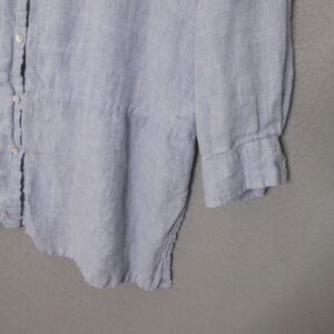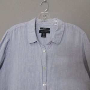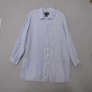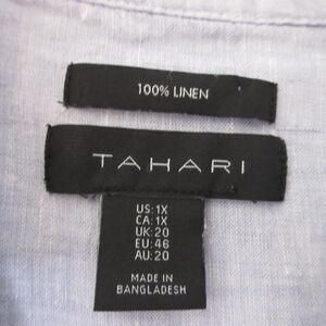 Tahari Top Tunic Women Plus 1X Blue 100% Linen Button Up Lagenlook Tabbed Sleeve
