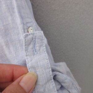 Tahari Top Tunic Plus 1X Blue 100% Linen Button Up Lagenlook Tabbed Sleeve