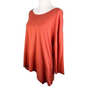 Tahari Top Tunic XL Burnt Orange Asymmetric Hem New