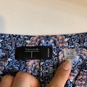 Tahari Top Womens 1X Plus Multi Medallion Print Split Neck Long Sleeve Popover