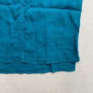 Tahari Top Womens M Teal Blue Short Sleeve Boxy Linen V Slit Neckline
