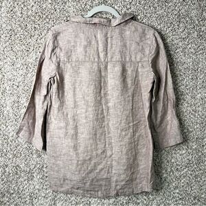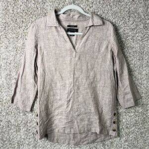 Tahari Top Women’s Small Tan Brown 100% Linen 3/4 Sleeve Collared Popover Blouse