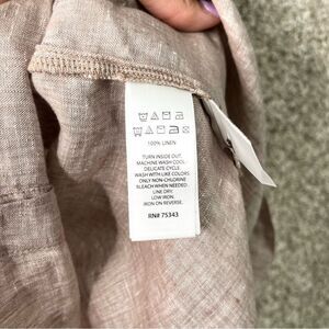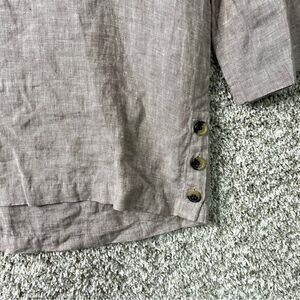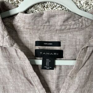 Excellent used Condition Women’s Tahari Tan Brown 100% Linen 3/4 Sleeve Collared Popover Blouse Top in Size Small