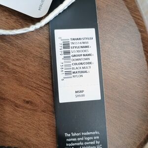 Elegant Tahari mini bags in a chic trio. Features black, silver, and cream colors. Ideal for versatile styling.