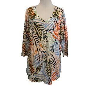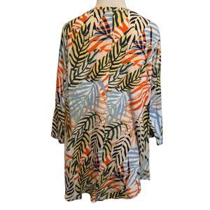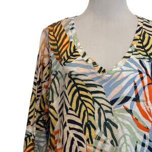 Tahari Tropical Knit Top Womens Size 1X Multicolor Palm Hawaiian Aloha Beachy