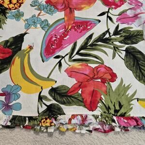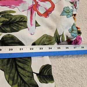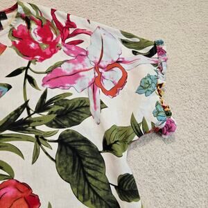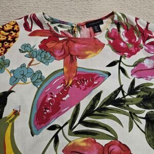 Tahari Tropical Print Short Sleeve Top Boxy cut Linen Blend Sz L Tropical Garden