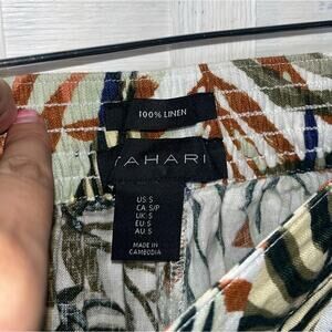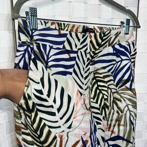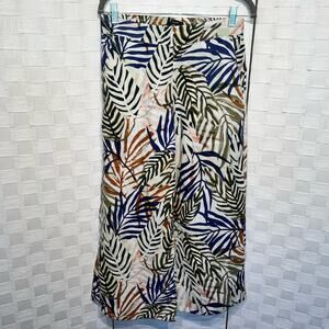 Tahari Tropical Print Wide Leg Cropped 100% Linen Pants Size Small Womens Vacay