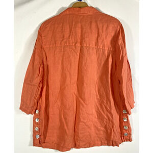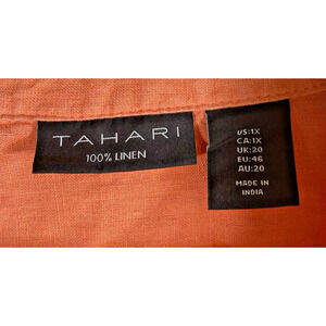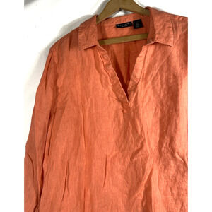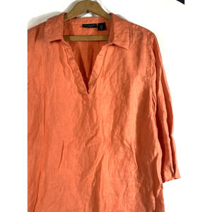 Tahari Tunic Top Size 1X 100% Linen Pumpkin Orange V Neck Lagenlook Herbalist