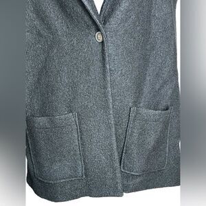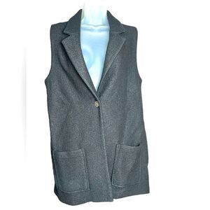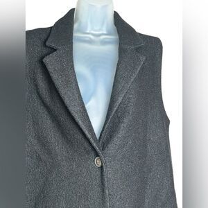 Tahari Tunic Vest Women M Wool Blend One Button Off Black Pocket Nubby Sweater