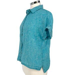 Tahari Turquoise 100% Linen Button-Up Short-Sleeve Shirt Blue Size Small