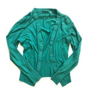 Tahari Turquoise Snap Up Cotton Cardigan Sweater Blouse - Large