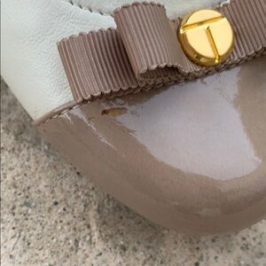Tahari Two Tan & Beige Cap Toe Ballet Flats with Bow Detail.