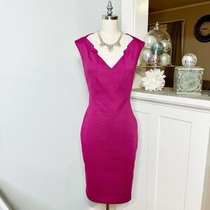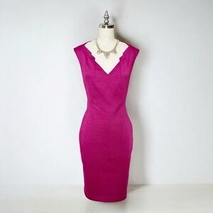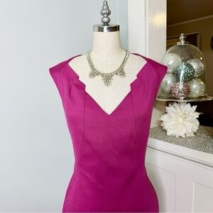 Tahari Berry Pink Sleeveless Sheath Dress. V Neckline. Nice quality dress. Fully lined with a zipper and slit in back. Like new. Size 10.