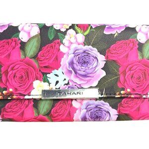 Tahari Vegan Leather Garden Rose Floral Print Tri-Fold Clutch Wallet NWOT