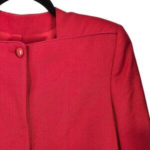 Tahari Vintage Linen Blend Long Sleeve Button Up Suit Jacket Red Blazer