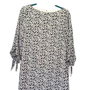 Tahari ASL White & Black Patterned A-line Mini Dress 3/4 Sleeves Tie Detail Size 2
