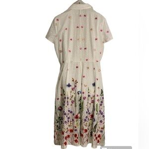 Tahari White Embroidered Floral Button Front Eyelet Pocket Short Sleeve dress