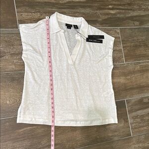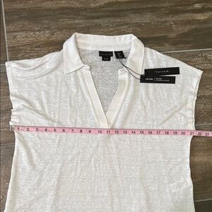 Tahari White Lux Linen Blouse with Cap Sleeves and Boxy Fit
