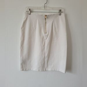 High quality stretchy white pencil skirt with golden back zipper and no slit. All white, great condition. Measures approximately 22 inches long 30 inch waist.