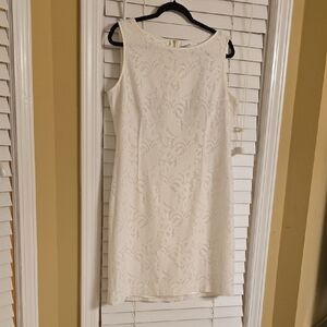 Tahari White Sheath Mini Dress Sleeveless Bateau