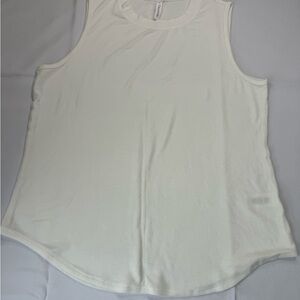 Tahari White Tank Top with Curved Hem and Textured Fabric