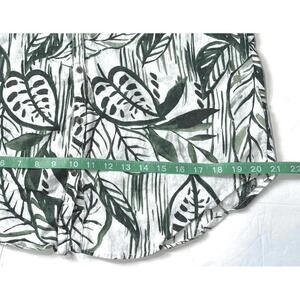 The Tahari White and Green Floral Sleeveless Button Up Shirt in Women's Size M is a stylish and versatile top perfect for various occasions such as travel, parties, or casual outings. Made from lightweight linen material, this shirt features a floral pattern in white with green accents, adding a touch of femininity to the design. The sleeveless style and button accents make it easy to wear during the summer and spring seasons, making it a practical yet fashionable addition to any woman's wardrobe.