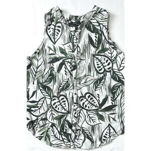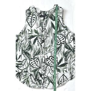 Tahari White and Green Floral Sleeveless Button Up Shirt Women's Size M