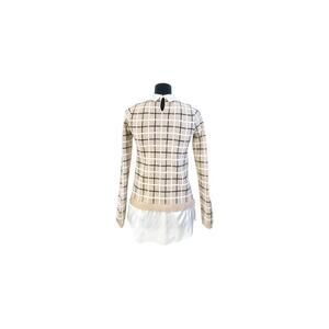 Elevate your style with this chic Tahari windowpane check sweater! It features a built-in faux white collared blouse for a sophisticated, layered look, making it perfect for both work and casual settings.