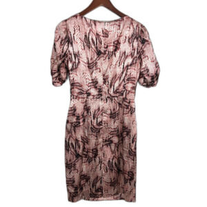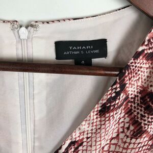 Tahari Wine Red Brown White Snakeskin Print Short Sleeve Surplice Dress Women 4