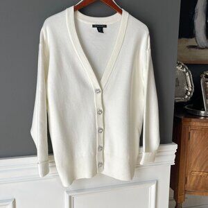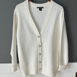 Tahari Winter White Oversize V-neck Stretch Rhinestone Button Cardigan Sweater S