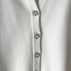 Tahari Winter White V-neck Stretch Rhinestone Button Cardigan Sweater