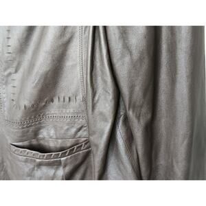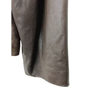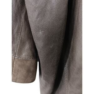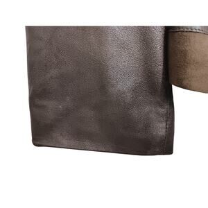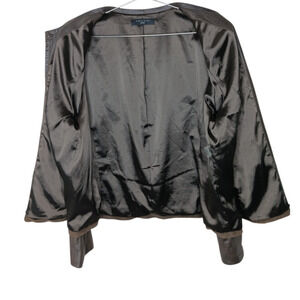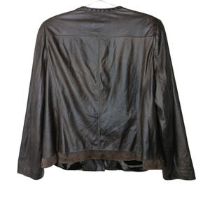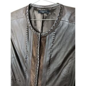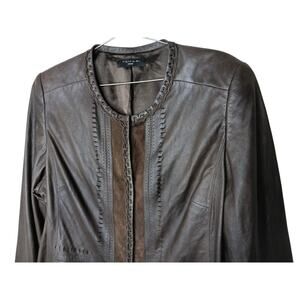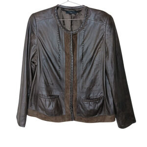 Tahari Woman 100% Leather Jacket Brown Suede Trim Open Front Pockets Boho Chic L