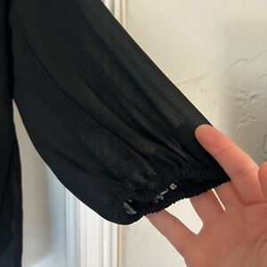 Tahari blouse, black chiffon top, sheer pleated blouse, plus size 1X, flowy tunic top, office wear, career top, dressy blouse, long sleeve top, elegant plus size, minimalist chic, classic black blouse, Tahari Woman 1X