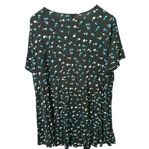 Tahari Woman Black Floral Print Stretch Top/ dress Short Sleeve Scoop Neck T-Shirt Blouse 1X