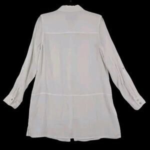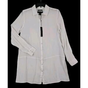 Tahari ~Woman Size S~ White 100% Linen Button Down Shirt Blouse Tunic Top NWT.
