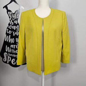Tahari Woman's Chartreuse Green Short Open Tailored Lined Jacket Blazer Size 14