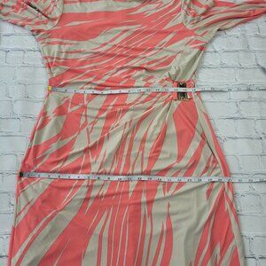 Tahari Woman’s Orange Cream 3/4 sleeve sheath midi dress jersey material size L