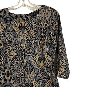 Tahari Women 3/4 Sleeve Paisley Print Shift Dress Size 2