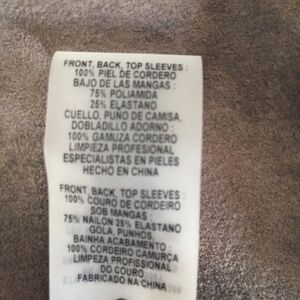 Front, Back, Tops of Sleeves 100% Genuine Lamb Leather