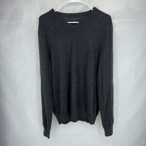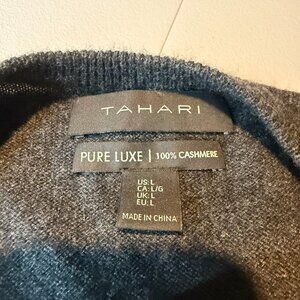 Tahari Women L Cashmere Sweater V Neck Gray Long Sleeve Soft Holiday 2 HOLES