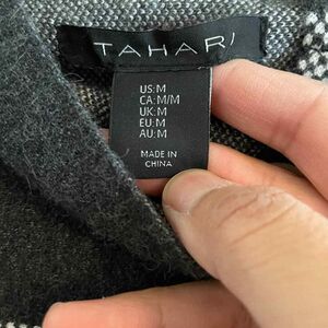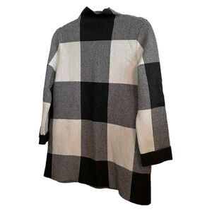 Tahari Women Medium Sweater Mock Neck Plaid Gray Black Cream Viscose Poly Nylon